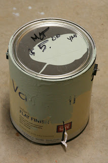 I have always loved the idea of a pretty laundry room but have never justified spending the money to do anything with mine. That is until I had the idea of doing it on the cheap. And I mean CHEAP. Those mis-tint cans of paint at home stores have always beckoned to me but I've never actually bought any. That is until now! I crossed my fingers and found a wonderful grayish green for only $5. You obviously can't be picky and I wasn't. I just wanted a neutral.